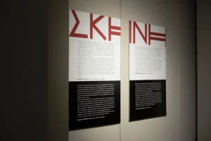 Η δουλειά περιλάμβανε μεγάλες εκτυπώσεις, panels και επιτοίχιο υλικό, σχεδιασμένα να υποστηρίζουν την αφήγηση και το περιεχόμενο της έκθεσης.